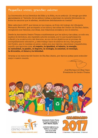 Este calendario 2017, que tienes en tus manos, es fruto del trabajo del dibujante