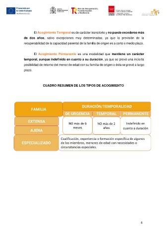 CUADRO RESUMEN DE LOS TIPOS DE ACOGIMIENTO