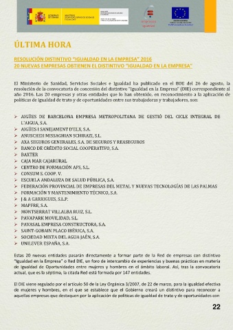 RESOLUCIÓN DISTINTIVO “IGUALDAD EN LA EMPRESA” 2016