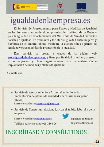Teléfono para consultas: 915 246 806 @IgualdadEmpresa