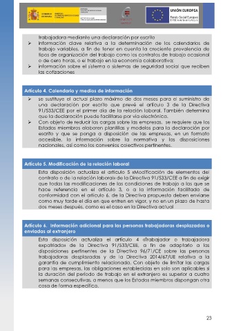 Artículo 6.  Información adicional para las personas trabajadoras desplazadas o
