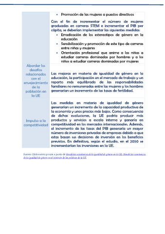 Fuente: Elaboración propia a partir de Beneficios económicos de la igualdad de género en la UE. Beneficios económicos