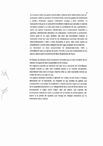 El Órgano de Gobierno de la Asociación considera que el valor contable de los
