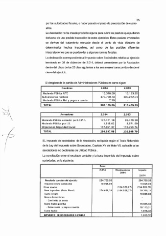 tenninado en 31 de diciembre de 2.014, deberá presentarse por la Asociacion