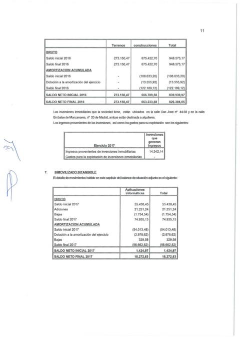 Las inversiones inmobiliarias que la sociedad tiene, están ubicados en la calle San Jase n° 44-68 y en la calle