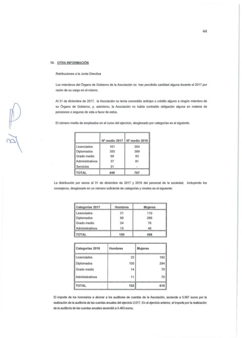 El importe de los honorarios a abonar a los auditores de cuentas de la Asociación, asciende a 5.567 euros por la