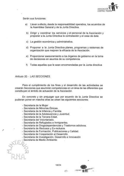 f) Todas aquellas que le sean encomendadas por la Junta directiva