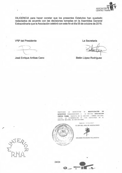 Extraordinaria que la Asociación celebró con este fin el día 05 de octubre de 2016.