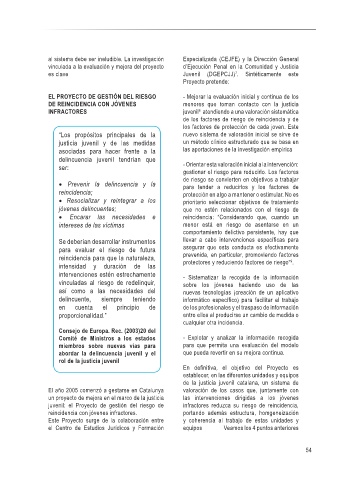 juvenil: el Proyecto de gestión del riesgo de infractores reduzca su riesgo de reincidencia,