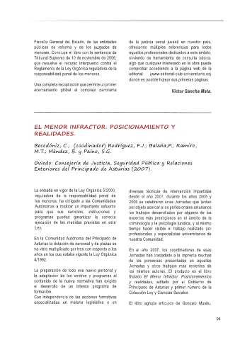 menores. Concluye el libro con la sentencia de aquellos profesionales dedicados a este ámbito,