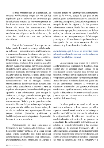 a una enorme diversidad de adolescencias que viven relevantes en las relaciones de convivencia entre