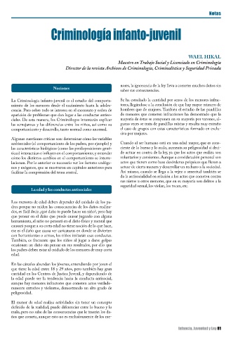 La Criminología infanto-juvenil es el estudio del comporta- Se ha estudiado la cantidad por sexos de los menores infrac-