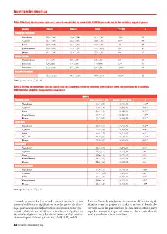 Tabla 1. Medias y desviaciones típicas así como los resultados de los análisis MANOVA para cada una de las variables, según el género