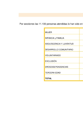 Por secciones las 11.100 personas atendidas lo han sido en la siguiente distribución: