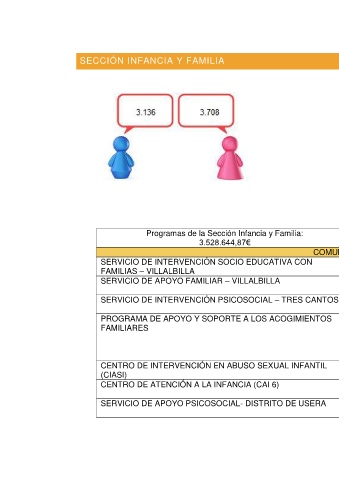 Programas de la Sección Infancia y Familia: Mujeres Hombres Nº Financiador