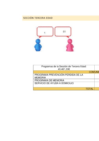 Programas de la Sección de Tercera Edad: Mujeres Hombres Nº Financiador