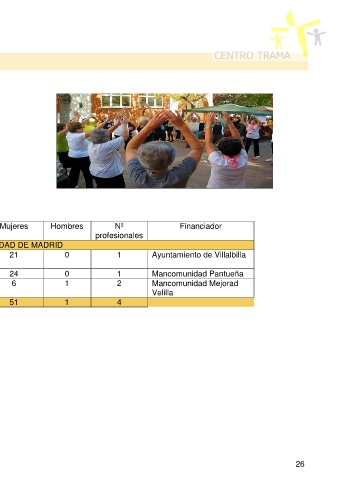 Programas de la Sección de Tercera Edad: Mujeres Hombres Nº Financiador