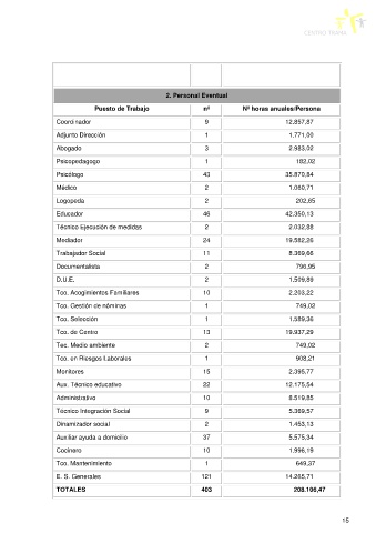 Puesto de Trabajo nº Nº horas anuales/Persona