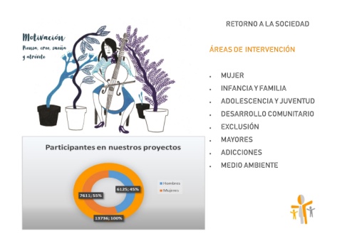 RETORNO A LA SOCIEDAD ÁREAS DE INTERVENCIÓN MUJER INFANCIA Y FAMILIA ADOLESCENCIA Y JUVENTUD DESARROLLO COMUNITARIO EXCLUSIÓN MAYORES ADICCIONES MEDIO AMBIENTE