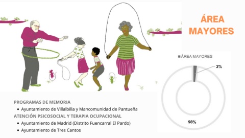 ÁREA MAYORES PROGRAMAS DE MEMORIA Ayuntamiento de Villalbilla y Mancomunidad de Pantueña ATENCIÓN PSICOSOCIAL Y TERAPIA OCUPACIONAL Ayuntamiento de Madrid (Distrito Fuencarral El Pardo) Ayuntamiento de Tres Cantos